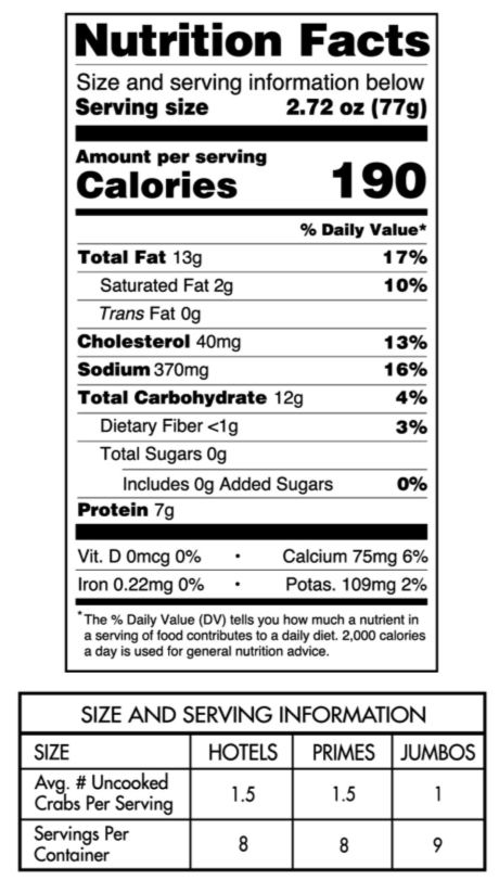 Handy soft shell crabs are harvested at their softest, most delectable stage immediately after shedding their hard outer shells. These succulent, tender crabs are then fully cleaned and dipped in tempura batter. Fast, easy preparation makes serving soft shell crabs a delicious meal for any occasion. Remember the entire crab is edible!!!